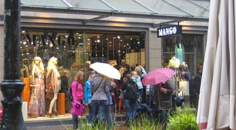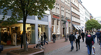 Empezamos por la animadísima y comercial calle Flingerstrasse. En el número 27 encontramos una tienda Mango, marca que ha sabido aportar libertad e individualidad a los armarios de mujeres y hombres de los cinco continentes. Por cierto, que Mango tiene otra tienda en el salón 1131 de las galerías comerciales del aeropuerto o Airport Arkaden. Poco después encontramos un Zara: estrella de la corona Inditex que surte de tendencias cheap & chic a los habitantes de esta ciudad, donde encontramos nada menos que tres sucursales: una en el número 28 de la calle que nos ocupa, otra en el 15 de Schadowstr y su flagship en el 64 de Königsallee.